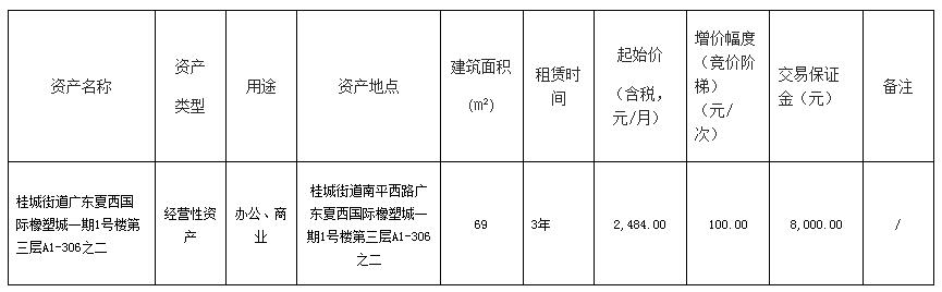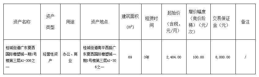 南海桂城街道广东夏西国际橡塑城一期1号楼第三层A1-306之二物业租赁项目