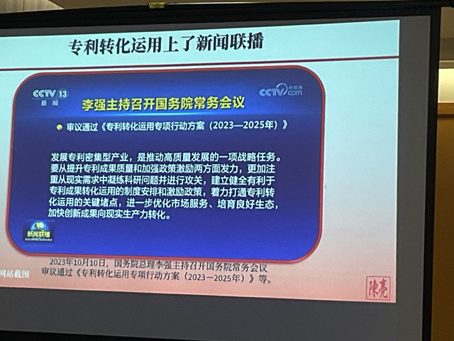 禅城区此次专题培训贴合佛山和全国的发展趋势。针对成果转移转化的不会转,没钱转,不能转,不愿转,不敢转的五大难点,国家密集出台了相关的法律法规。2023年10月10日国务院常务会议审议通过《专利转化运用专项行动方(2023-2025年)》。发展专利密集型产业,是推动高质量发展的一项战略任务。要从提升专利成果质量和加强政策激励两方面发力,更加注重从现实需求中凝练科研问题并进行攻关,建立健全有利于专利成果转化运用的制度安排和激励政策,着力打通专利转化运用的关键堵点,进一步优化市场服务、培育良好生态,加快创新成果向现实生产力转化。
