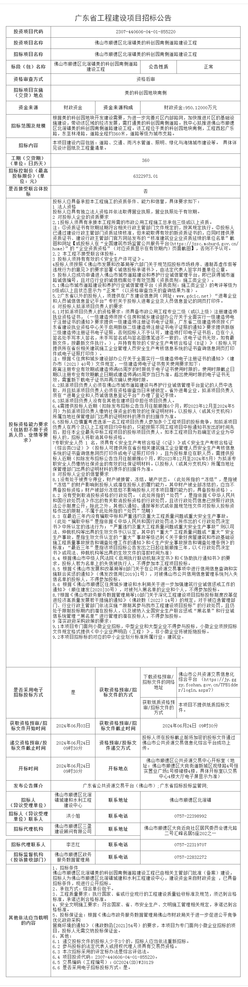 佛山市顺德区北滘镇美的科创园南侧道路建设工程招标公告