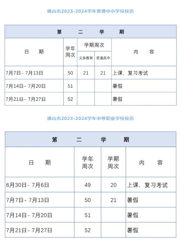 2023-2024学年普通中小学校上课、期末复习考试时间为2024年7月7日至7月13日;