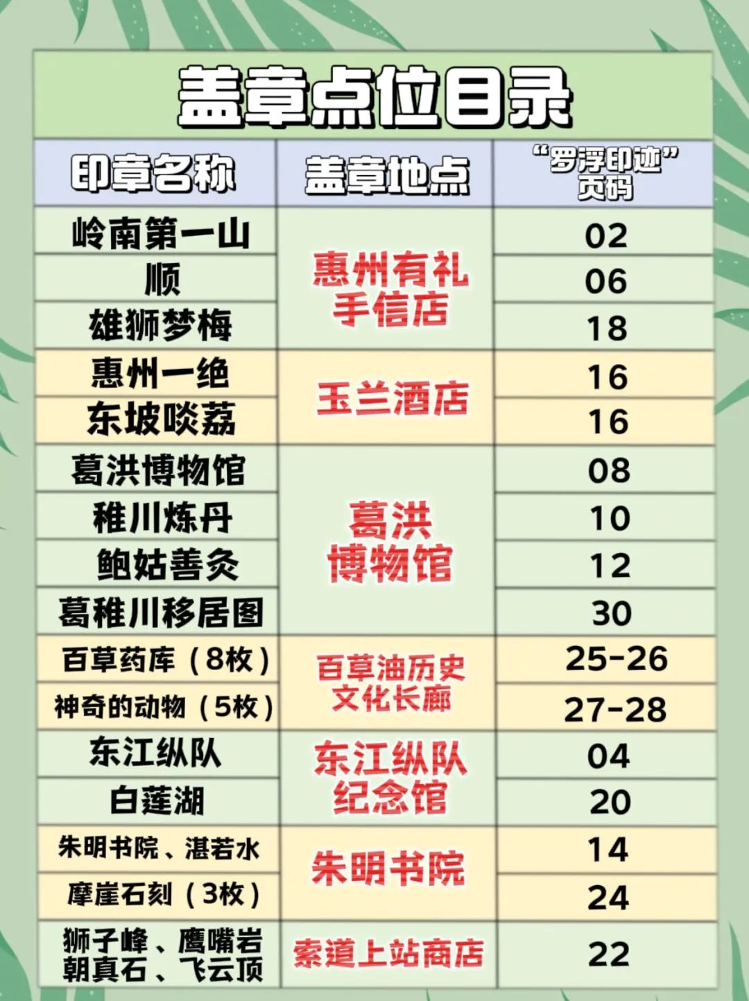 每个景点含印章2-8个