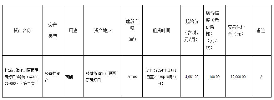 南海桂城街道平洲夏西罗芳圩口3号铺(GZB0005-003)(第二次)物业租赁项目