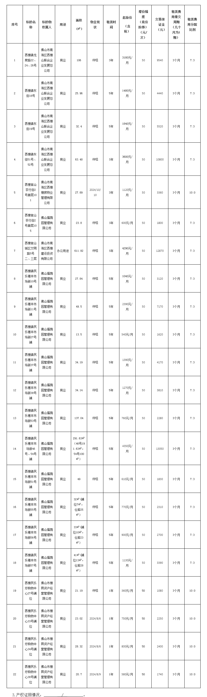 西樵镇公有物业招租(2024年第13期)竞租公告