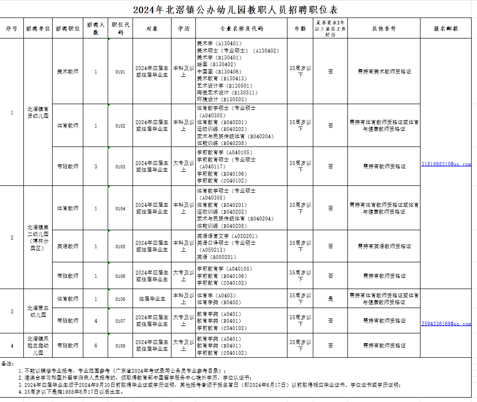 1.《2024年北滘镇公办幼儿园教职人员招聘职位表》