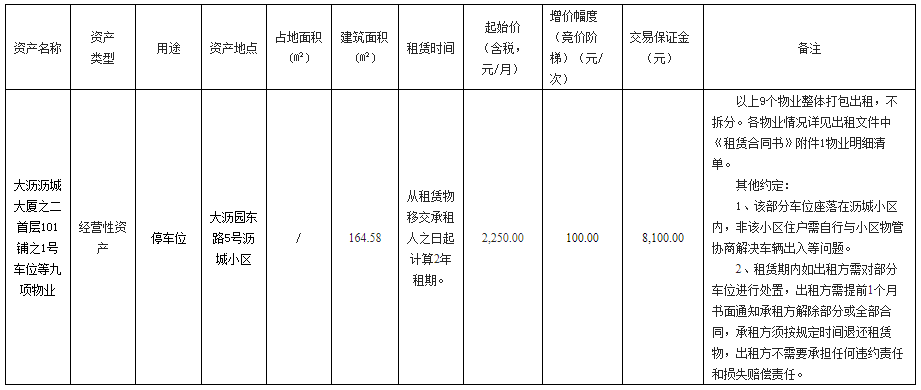 南海大沥沥城大厦之二首层101铺之1号车位等九项物业(第三次)租赁公告