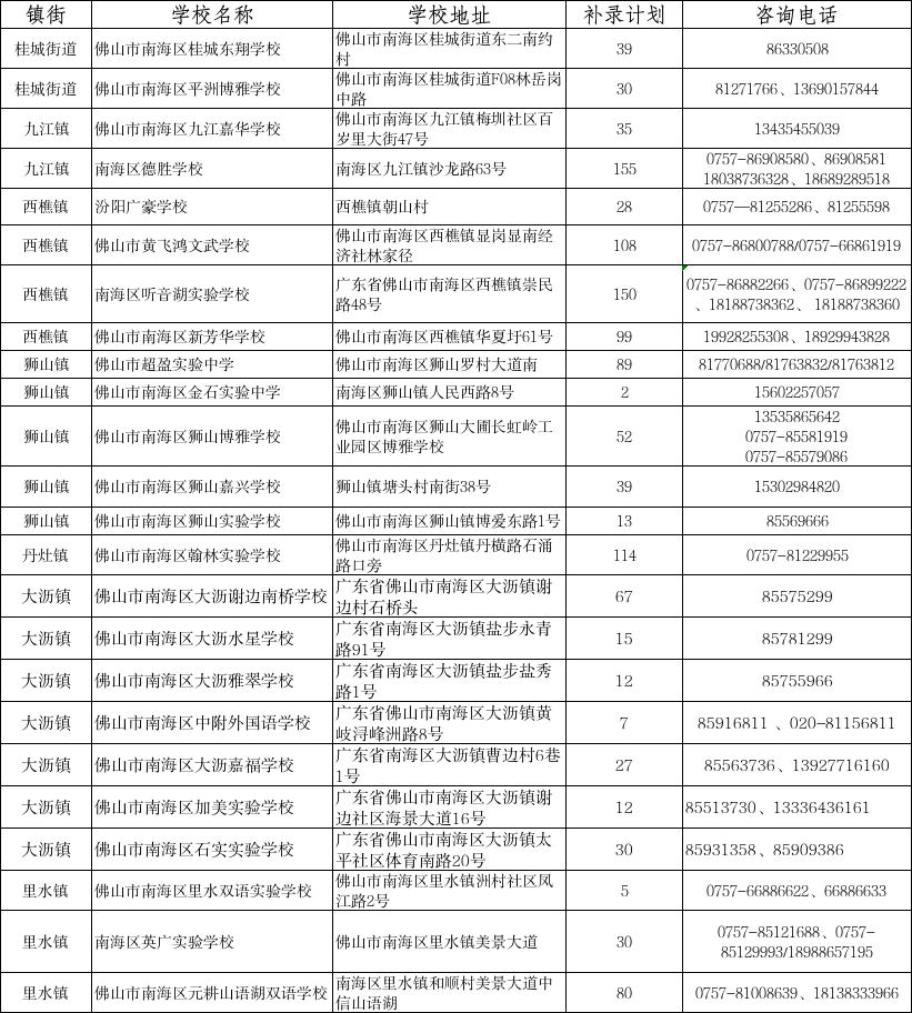 3.本批次补录为区内补录,学校不得补录区外学生。根据我市招生政策规定,学校应首先进行区内补录,在本区不能完成招生计划,审批机关为市教育行政部门的学校,在保障住宿条件的前提下,经区教育行政部门审核同意并报市教育行政部门批准,可适当面向市内区外补录。具体补录名单由市教育局发布,请密切留意佛山教育微信公众号。