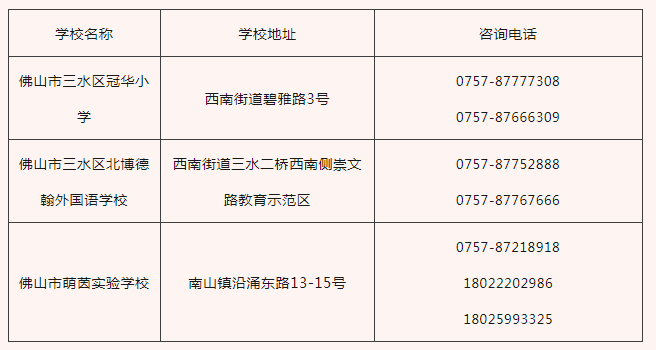 三水区民办小学、初中区内补录学校名单及补录指引
