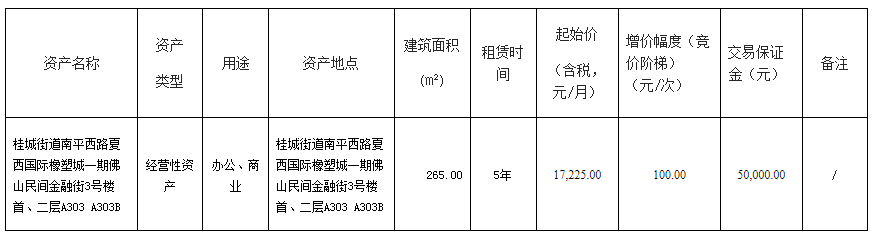 1.招租人:佛山市南海区桂城城市建设投资有限公司