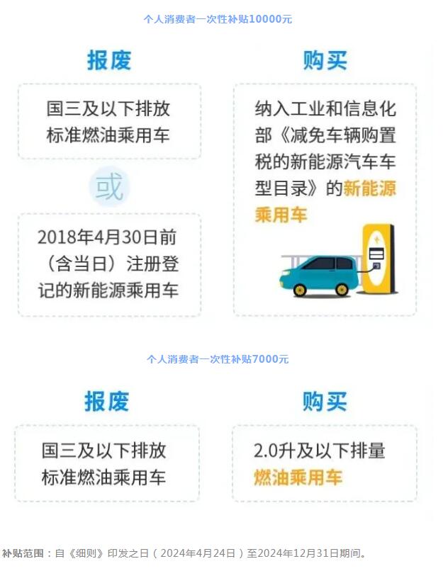 发放现金补贴。车主完成报废旧车和购买新车手续后,通过汽车以旧换新平台提交申请补贴材料,资料审核通过后,各地财政部门按程序将补贴资金拨付至申请人提供的银行账户。