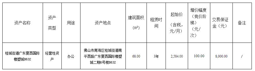 南海桂城街道广东夏西国际橡塑城B635物业租赁项目