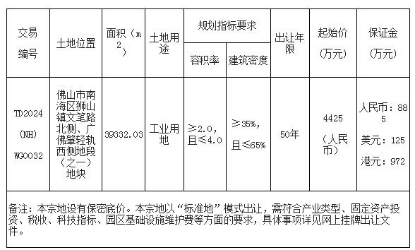 经佛山市人民政府批准,佛山市自然资源局决定委托佛山市公共资源交易中心南海分中心采用网上挂牌方式出让下列地块的国有建设用地使用权。现将有关事项公告如下: