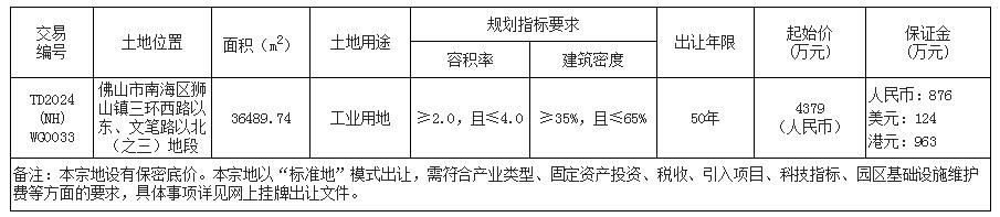 佛山市南海区国有建设用地使用权网上挂牌出让公告