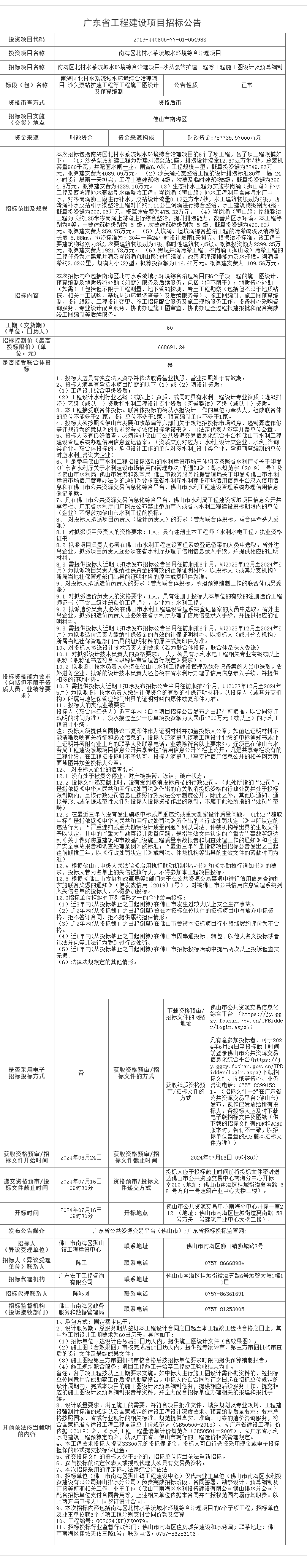 南海区北村水系流域水环境综合治理项目-沙头泵站扩建工程等工程施工图设计及预算编制招标公告