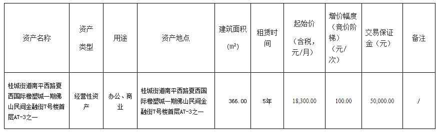 南海桂城街道南平西路夏西国际橡塑城一期佛山民间金融街10号楼首、二层A1009、A1018物业租赁项目
