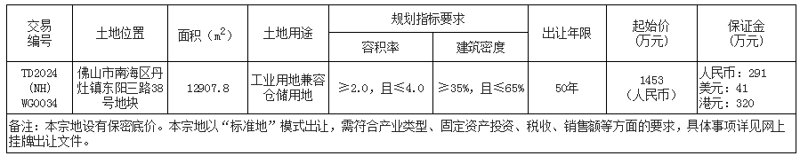 八、自本次公告起至网上挂牌截止期间,如有关于本宗地竞买文件的修改、澄清、说明等将通过网上交易系统以及佛山市南海区人民政府网发布,请有意参与竞买者密切留意。其它未尽事宜,详见本宗地的网上挂牌出让文件。