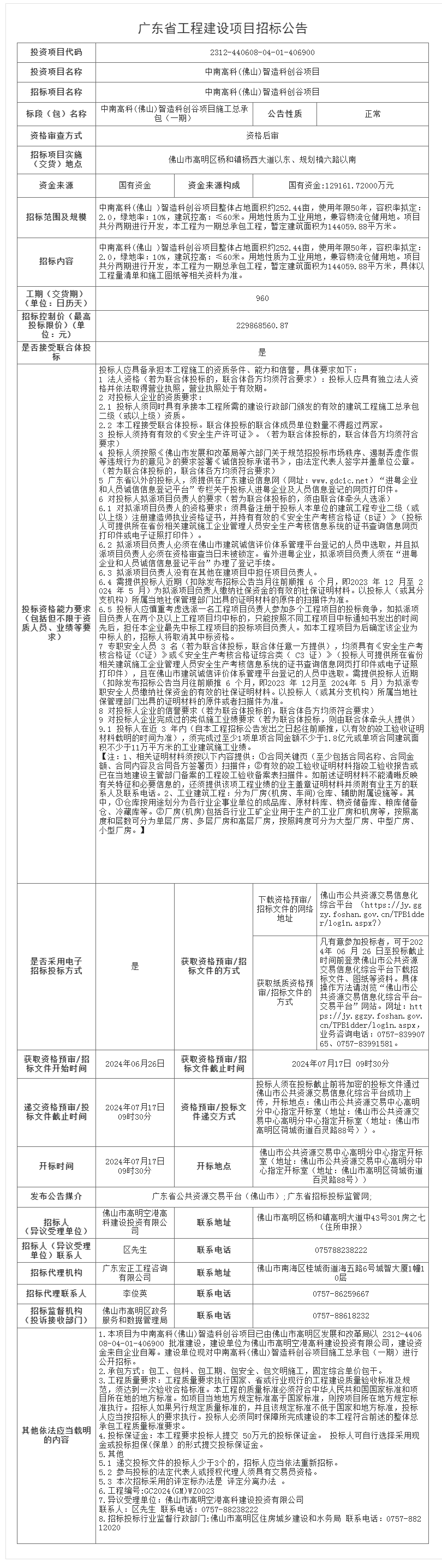 中南高科(佛山)智造科创谷项目施工总承包(一期)招标公告