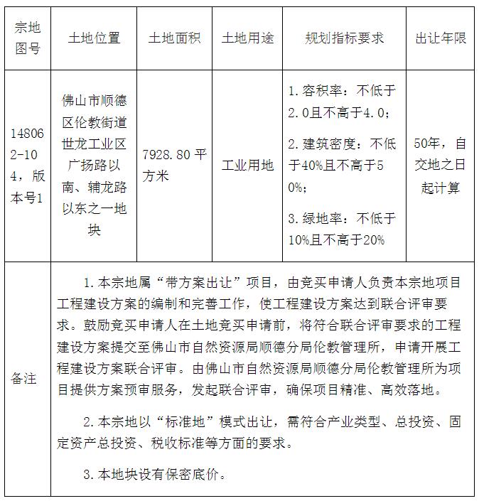 经佛山市顺德区人民政府批准,佛山市自然资源局顺德分局委托佛山市顺德区公共资源交易中心以现场挂牌竞买方式出让下列地块的国有建设用地使用权,现将公开挂牌竞买的有关事宜公告如下: