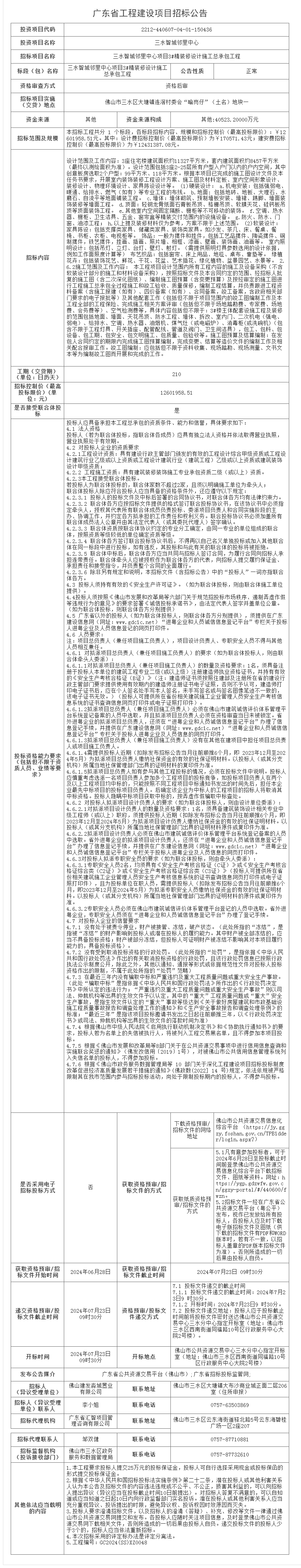 三水智城邻里中心项目3#精装修设计施工总承包工程招标公告