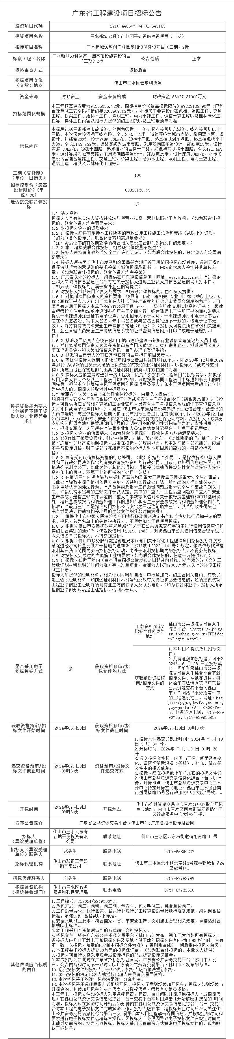 三水新城5G科创产业园基础设施建设项目(二期)2标招标公告