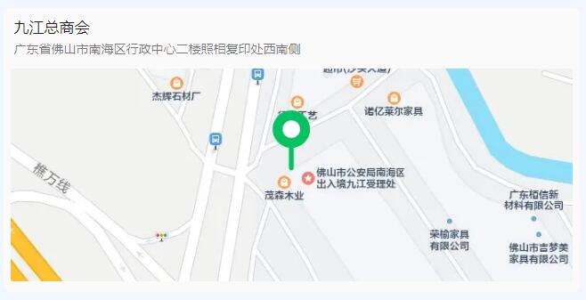 办公地址:佛山市南海区九江镇行政服务中心二楼总商会办公室;
