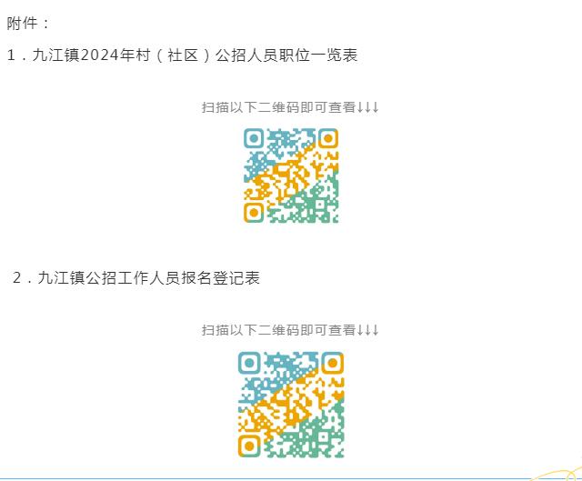 本次报名的年龄计算时间点为2024年6月30日。招聘职位信息详见《九江镇2024年村(社区)公招人员职位一览表》(附件1)。