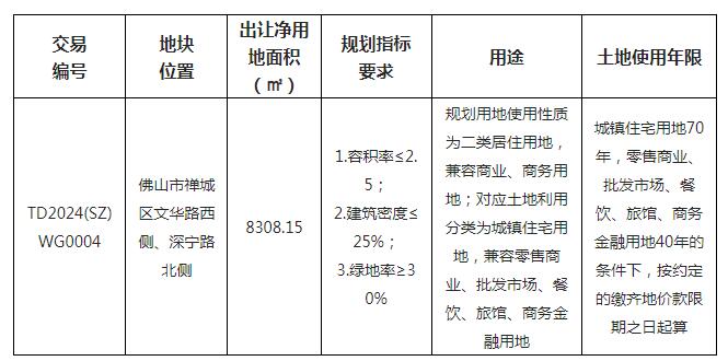 五、有意参与竞买者可于2024年7月5日后登录网上交易系统下载TD2024(SZ)WG0004地块的《佛山市国有建设用地使用权网上挂牌出让文件》。