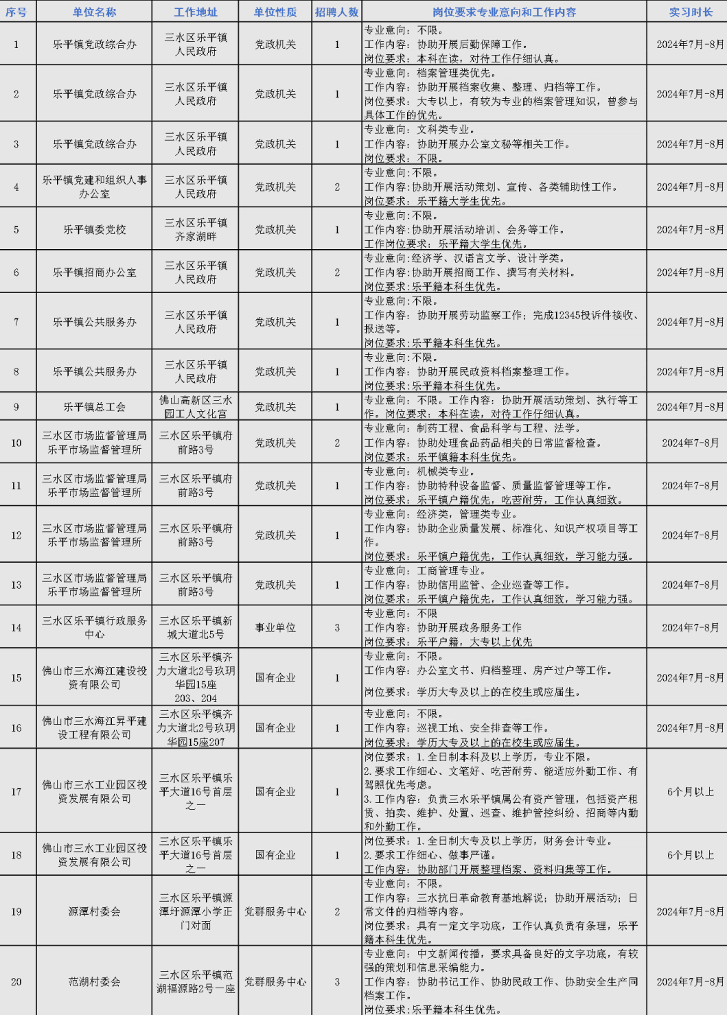 为落实《佛山学子“归巢”计划三年行动方案(2023-2025年)》有关要求,充实乐平镇青年大学生的假期生活,搭建大学生与用人单位招聘对接通道,加强高校学生重点群体就业服务,吸引更多优秀大学生选择乐平、扎根乐平,推动乐平镇高质量发展,乐平镇拟组织开展2024年“展翅计划”,组织青年大学生群体于假期到镇内机关部门、村居、企事业单位等进行实习。