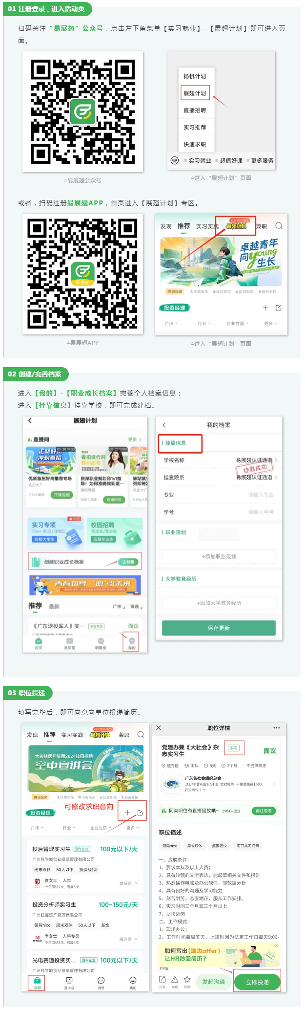 2.“展翅计划”所有岗位属于社会实践岗位,具体岗位信息以“易展翅”平台发布为准。