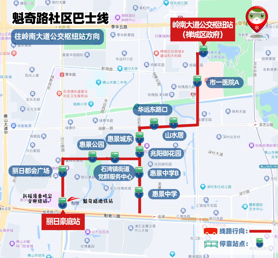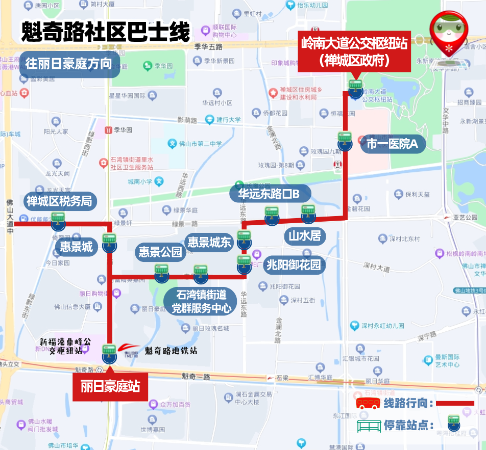 📍 首末站:丽日豪庭-岭南大道公交枢纽站(禅城区政府)
