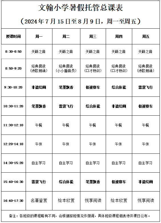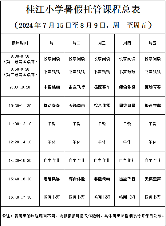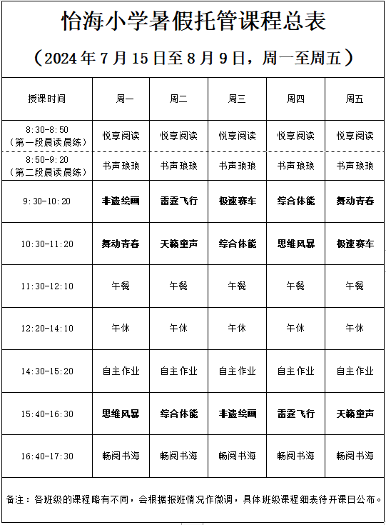 其中周一至周五的暑假托管服务时间为上午8:30-下午5:30,逢周六日休息。