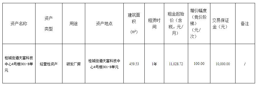 南海桂城街道天富科技中心4号楼301-B单元物业租赁项目