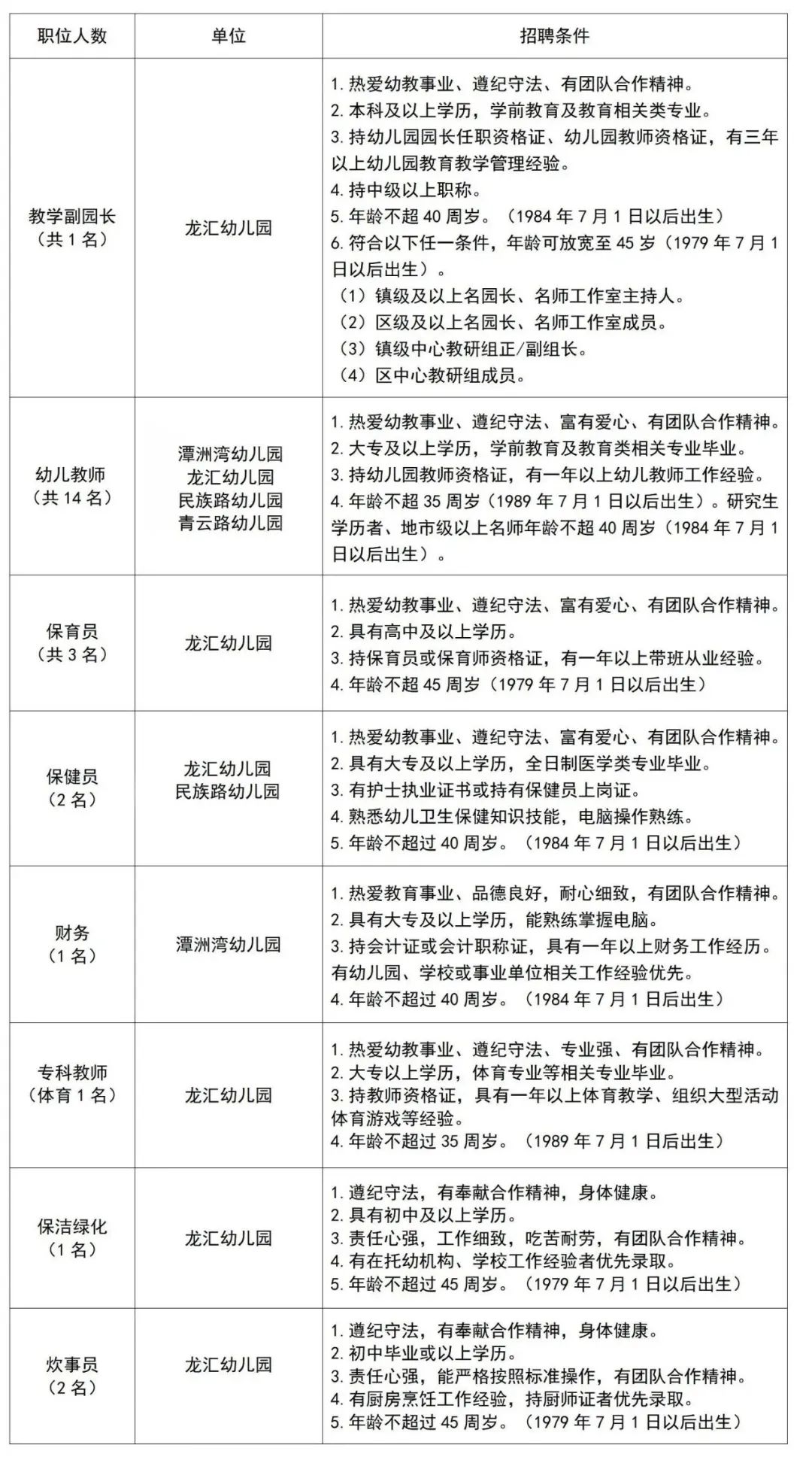 为推动陈村镇学前教育高质量发展,满足师资配备需要,现陈村镇宣传文体旅游和教育办公室面向社会公开招聘陈村镇四所公办幼儿园(潭洲湾幼儿园、青云路幼儿园、民族路幼儿园、龙汇幼儿园)合同制教职工若干名。