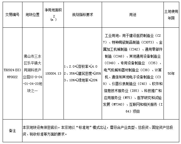 五、有意参与竞买者可于2024年7月12日后登录网上交易系统下载TD2024(SS)WP0022地块的《佛山市三水区国有建设用地使用权网上拍卖出让文件》。