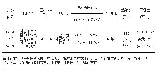 经佛山市人民政府批准,佛山市自然资源局决定委托佛山市公共资源交易中心南海分中心采用网上挂牌方式出让下列地块的国有建设用地使用权。现将有关事项公告如下: