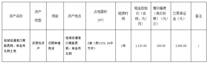 (4)履约保证金:按竞得价的三个月租金(取整)收取,承租方应在签订合同之日起一个月内向出租方交纳。