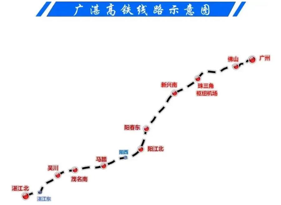 广湛高铁串联广州、佛山、肇庆、云浮、阳江、茂名、湛江七座城市,是国家“八纵八横”高速铁路网、时速350公里沿海铁路客运大通道的重要组成部分,同时也是广东省自主投资建设技术最复杂、线路最长、投资最大的铁路项目,是连接粤港澳大湾区和海南自贸港、北部湾城市群的高速铁路。