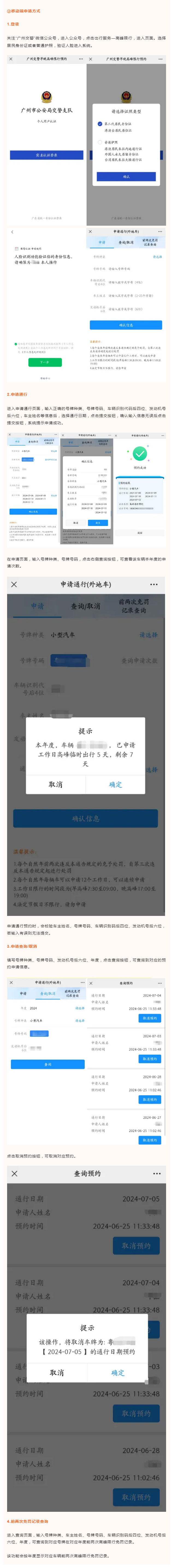 非广州市籍小客车“高峰限行”管理措施自7月1日正式实施,前15天为执法过渡期。该措施规定,工作日7时30分至9时,17时至19时禁止非广州市籍小客车(含临时号牌车辆)在广州市管控范围内道路通行。对于违反规定的非广州市籍小客车,违规一次处于200元罚款,并记1分。