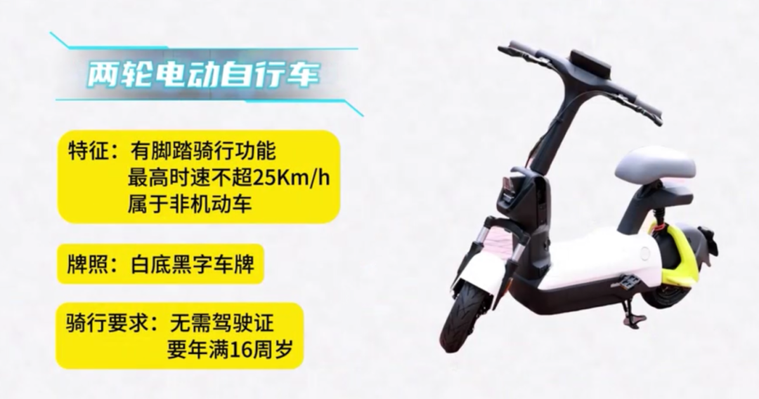 具有脚踏骑行功能,最高时速不超过25km/h,具有国家颁发的3C认证的,属于非机动车范畴,需要在登记服务点进行车牌登记,登记的是白底黑字的佛山牌照。电动自行车不需要驾驶证,但需要驾驶人年满16周岁方可骑行。