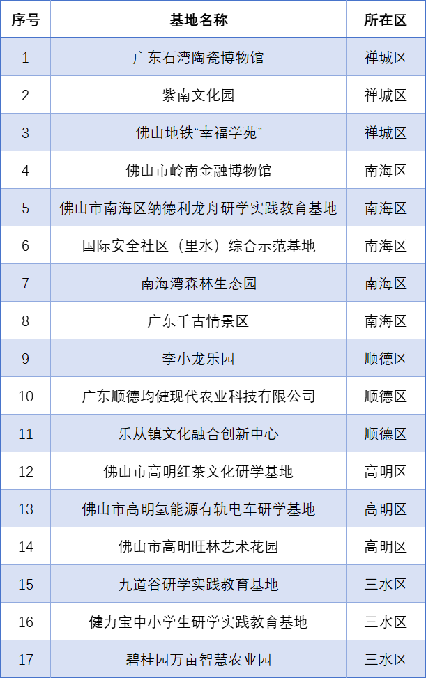2024年佛山市中小学生研学实践教育基地名单公布!
