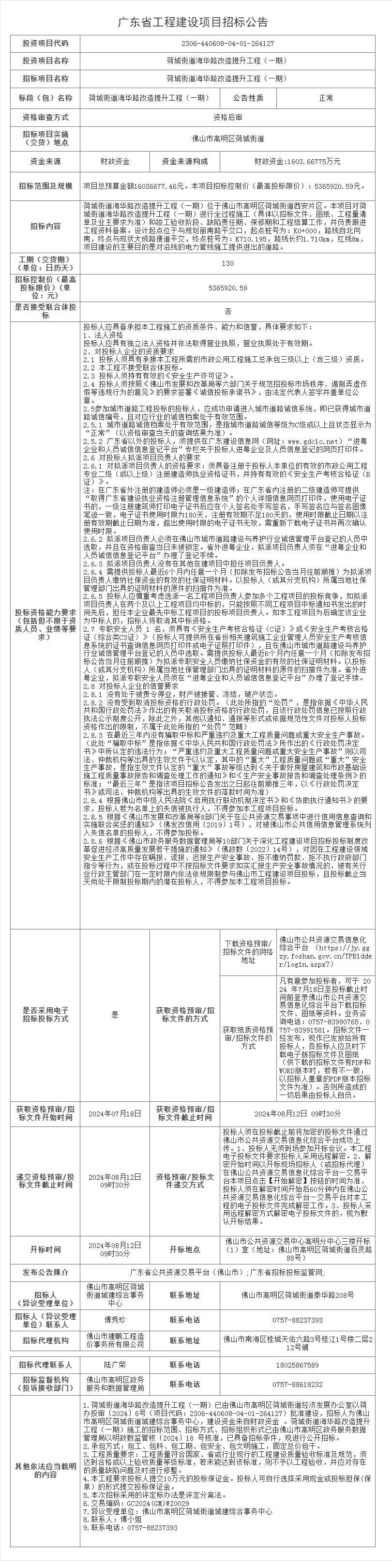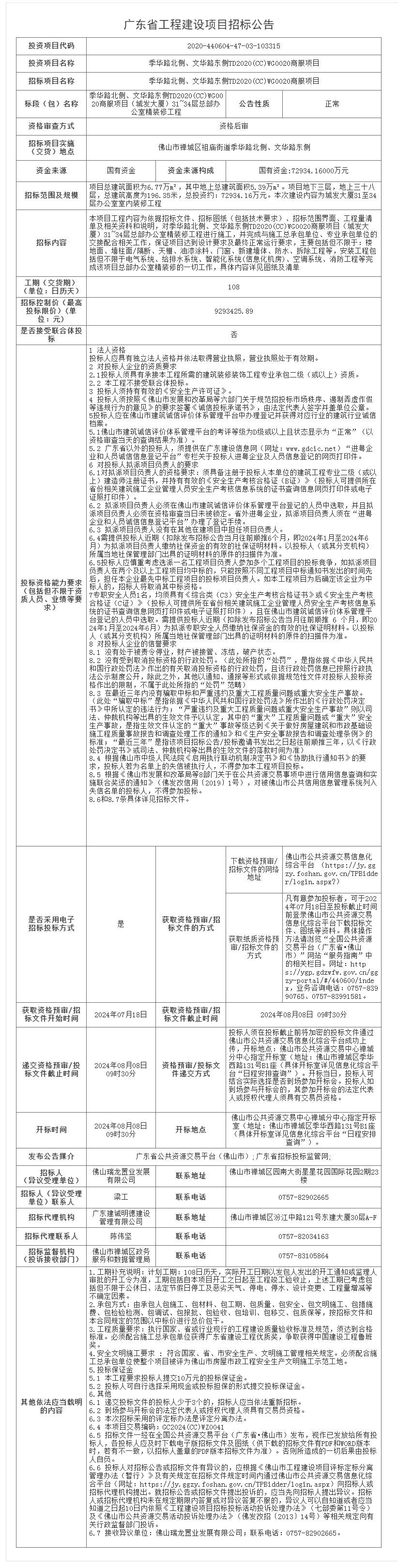 禅城季华路北侧、文华路东侧TD2020(CC)WG0020商服项目(城发大厦)31~34层总部办公室精装修工程招标公告