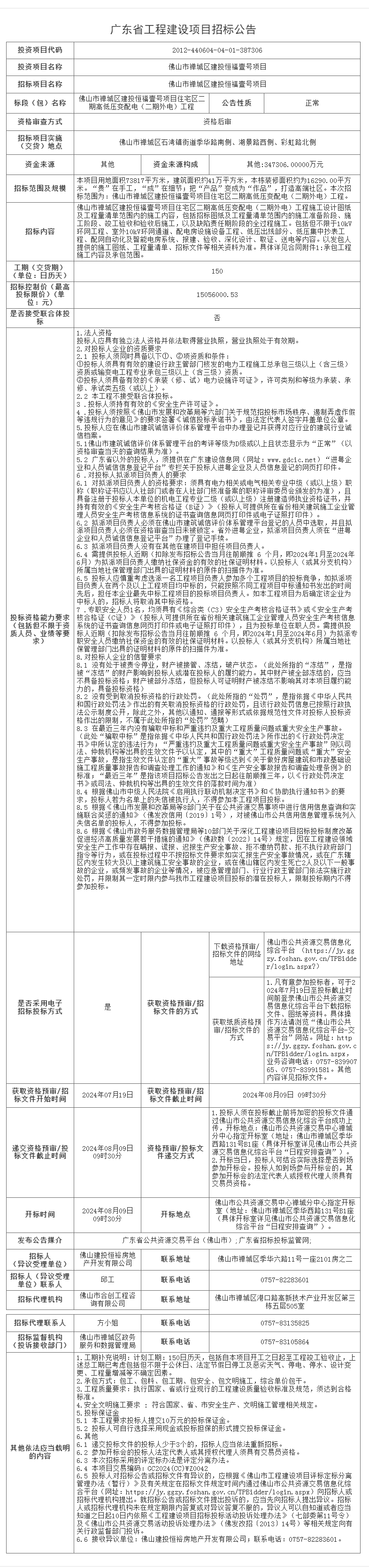 佛山市禅城区建投恒福壹号项目住宅区二期高低压变配电(二期外电)工程招标公告