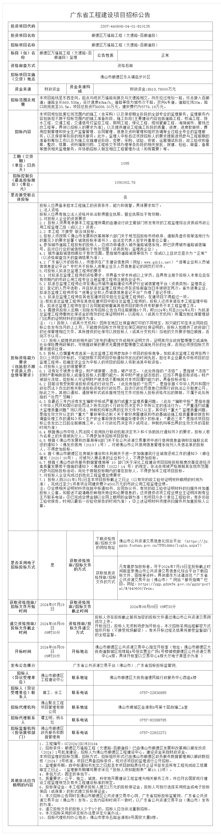 顺德区万福路工程(文德路-百顺道段)监理招标公告