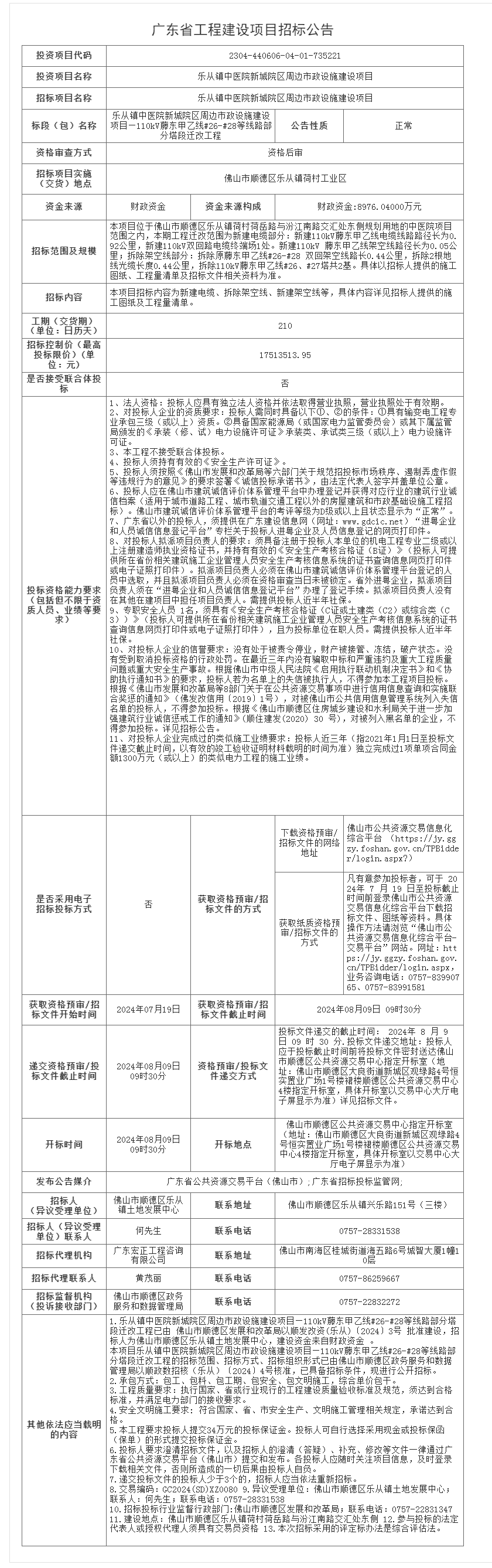 佛山市南海区大沥镇奇槎大道(水头涌-联河路)道路工程配套10kV电力迁改工程(桂和路-联河路段)招标公告