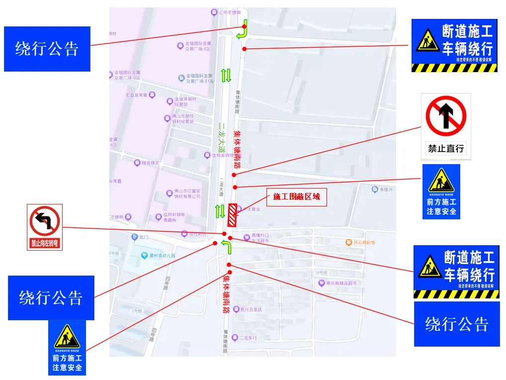 道路封闭施工期间,请各位车主和行人绕行二龙大道西侧道路,多谢支持和配合。