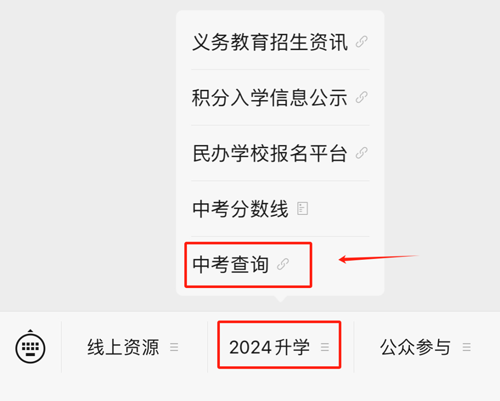 点击菜单栏【2024升学】-【中考查询】,即可进入查询页面。