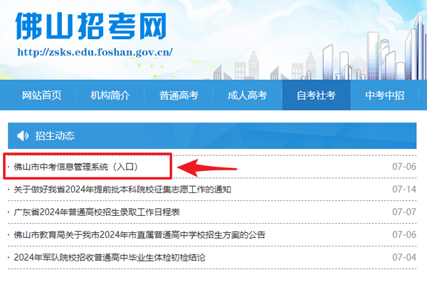 用电脑浏览器打开网址:http://zsks.edu.foshan.gov.cn