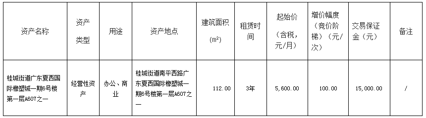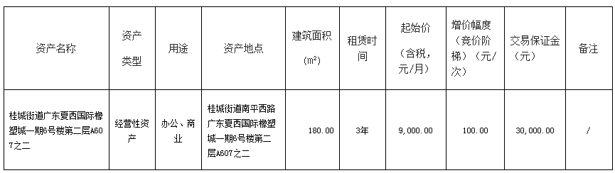 南海桂城街道广东夏西国际橡塑城一期6号楼第二层A607之二物业租赁项目
