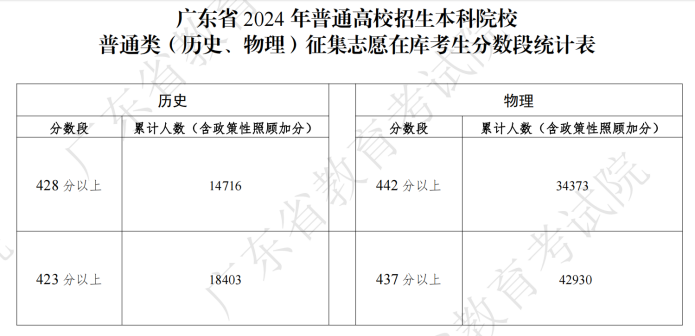 据悉,此次征集志愿的分数线相比放榜时公布的各批次录取最低分数线有所下降。其中普通类(历史)、普通类(物理)均下降5分,分别为423分和437分;音乐类文化科总分下降10分,专业省统考下降5分;舞蹈类专业省统考下降5分;表(导)演类(含戏剧影视表演、戏剧影视导演)、表(导)演类(服装表演)文化科下降10分;播音与主持类(含粤语)文化科下降2分,专业省统考下降1分;美术与设计类文化科下降5分;重点高校招收农村和脱贫地区学生(地方专项计划)普通类(历史)下降13分,其余保持不变。