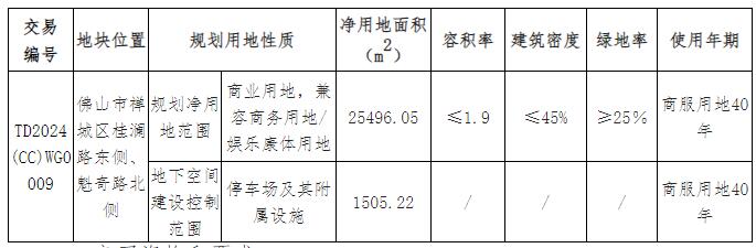 本块地其他规划指标和要求按《高明区土地使用规划条件》(佛规明设函〔2024〕0074号)相关规定执行。
