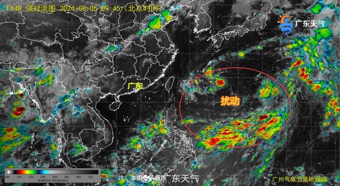 受菲东扰动西行靠近,其外围环流+热力条件+莲花山脉的地形抬升的共同作用,粤东强对流风险较大,午后及夜间更易触发强对流,雷雨时伴有8~11级短时大风,请注意提高警惕。